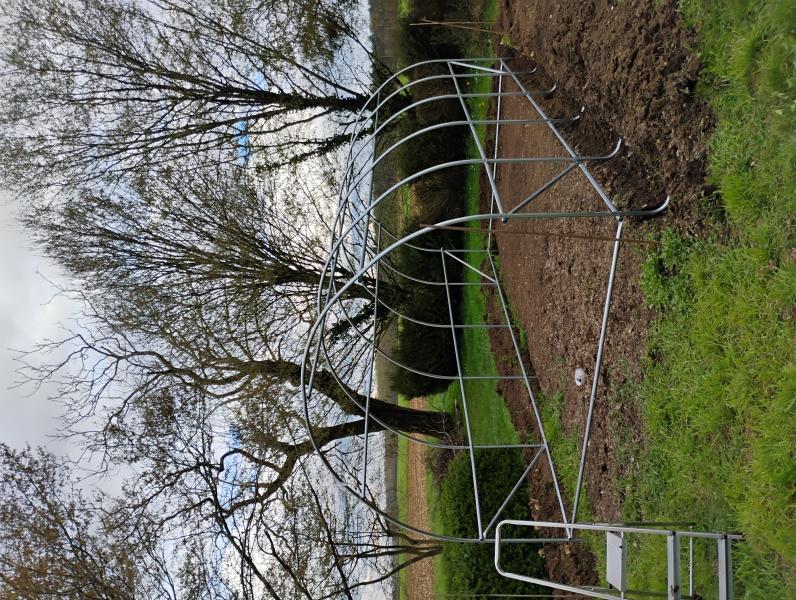 - Armature renforcée : 7 barres horizontales (pas besoin de fil deltan), 1 arceau tous les 1,20m, pieds d'ancrage aux extrémité de chaques arceau.