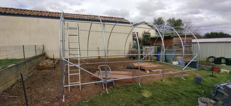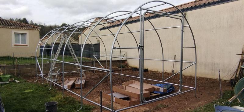 serre de tres bonne qualitévraiment trés content de mon achat c est une serre de trés bonne qualité les tubes en diametre 32 tiennent la route facile a monter bache facile a decouper (prevoir un endroit plat avec sufisament d'espace) tres resistante n'a pas bougé lors de la derniere tempete si vous devez acheter une serre sans hesiter je vous recommande la serre française