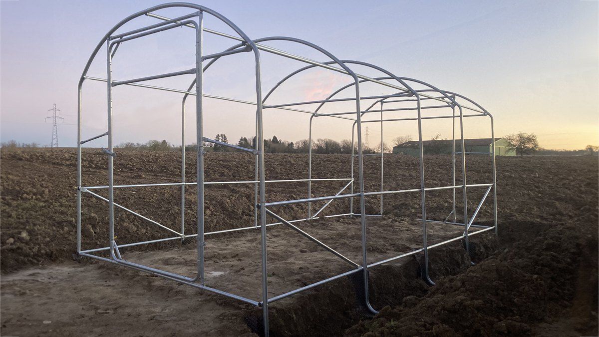 - Pieds coudés à l'extrémité de chaque arceaux pour un ancrage au sol de qualité