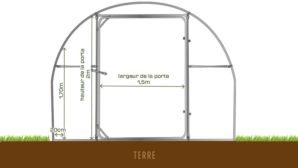 - Porte de 1,50 de large : permet une ventilation optimale et un passage facilité avec une brouette.