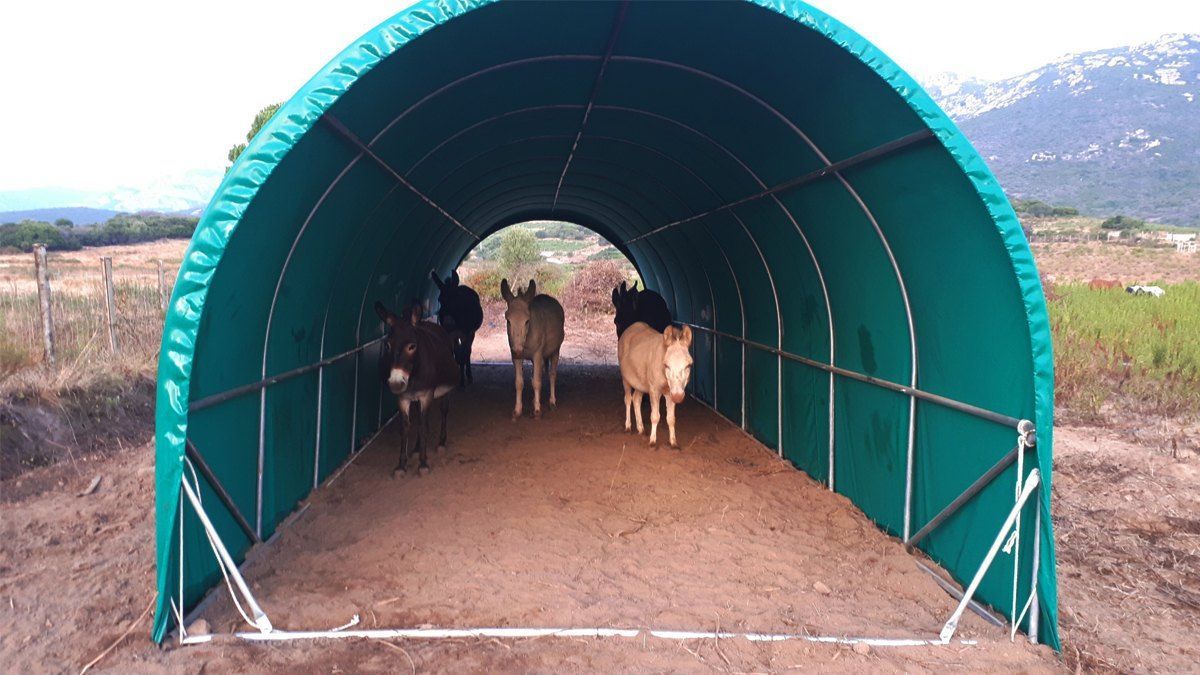 Abris à chevaux, ânes ou stockage de foin avec sa hauteur de 2m30 ce tunnel s'adaptera parfaitement à vos besoins.