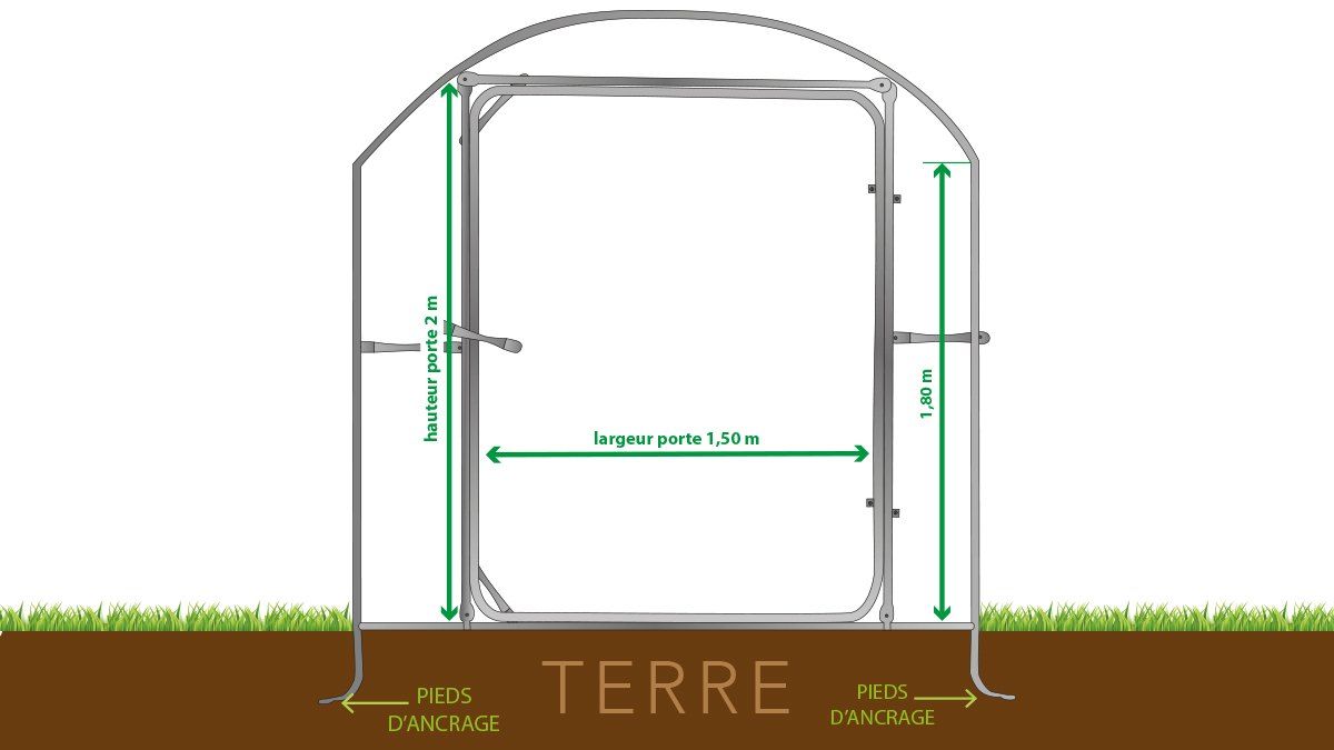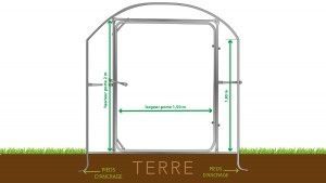 - Armature renforcée : 7 barres horizontales , 1 arceau tous les 1,20m, pieds d'ancrage aux extrémité de chaques arceau.