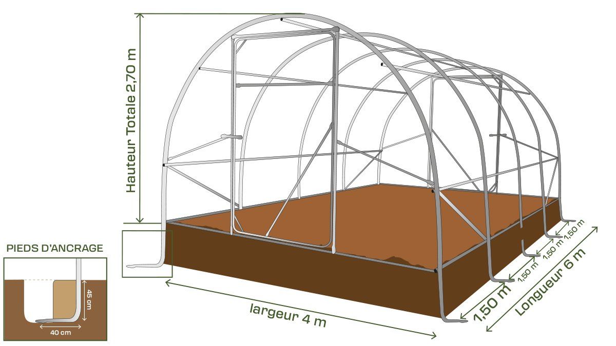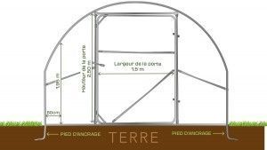 - Armature renforcée : 7 barres horizontales (pas besoin de fil deltan), 1 arceau tous les 1,50m, pieds d'ancrage aux extrémité de chaques arceau.